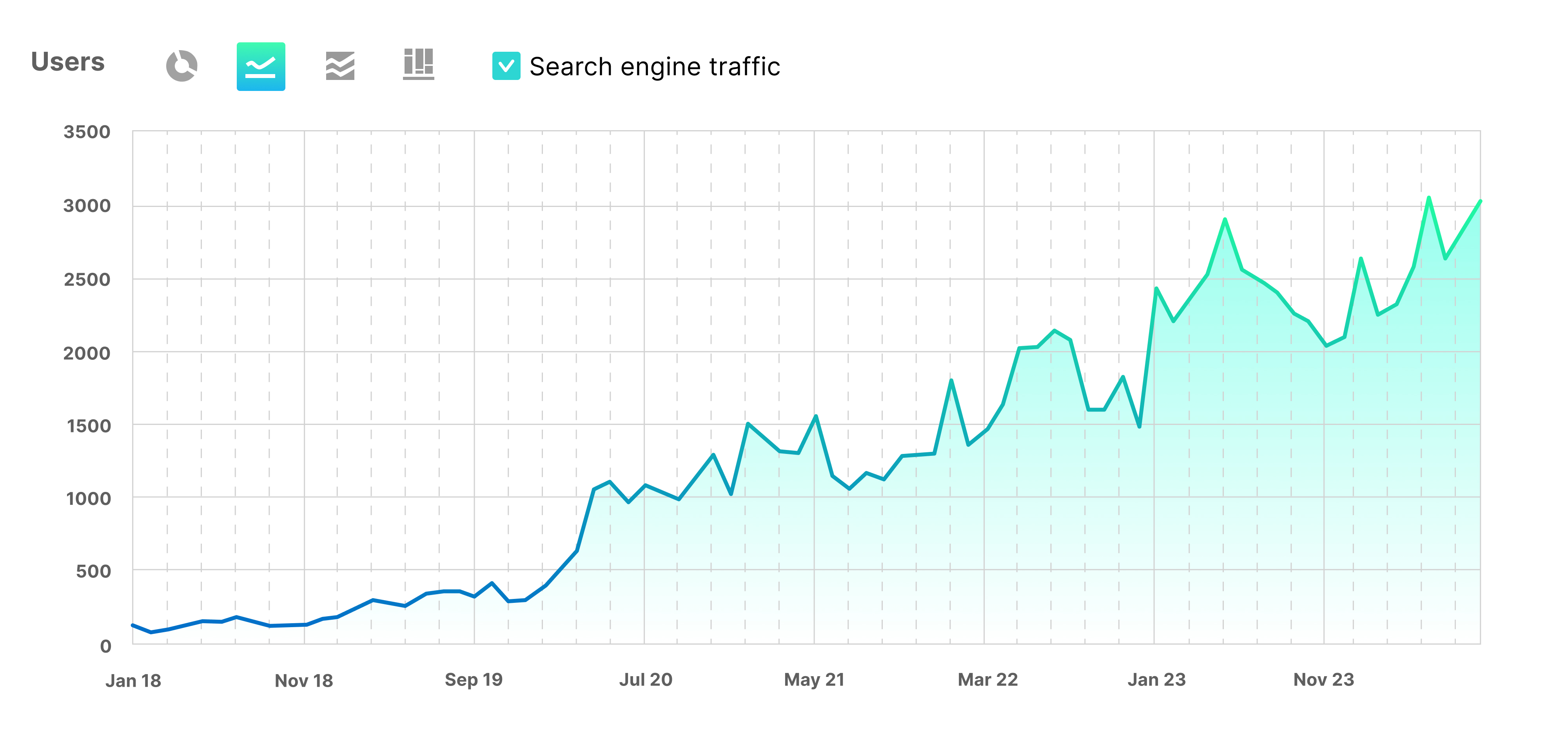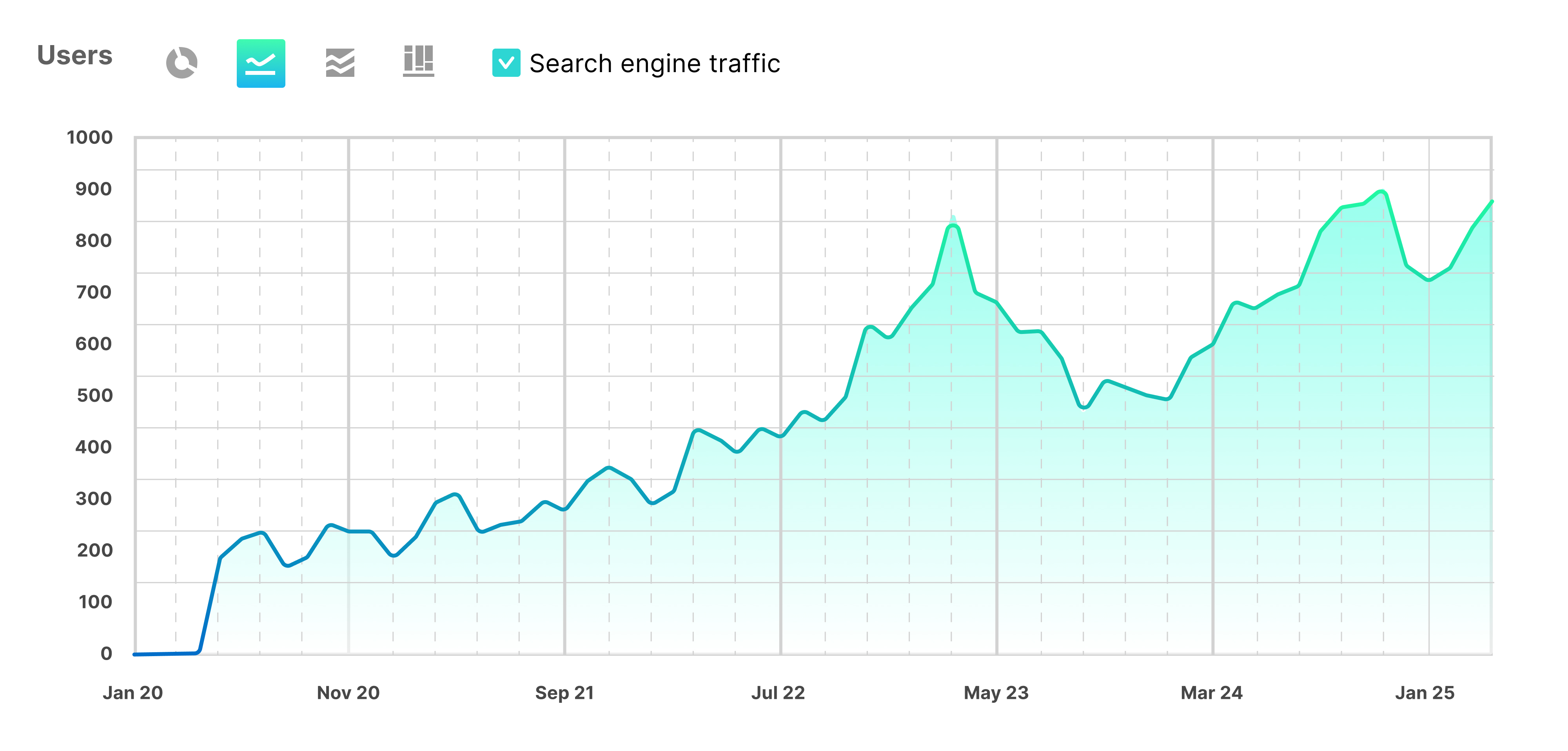 Aquí mostramos ejemplos del crecimiento de varios sitios creados con la CMS de ELNIQ mediante SEO manual.